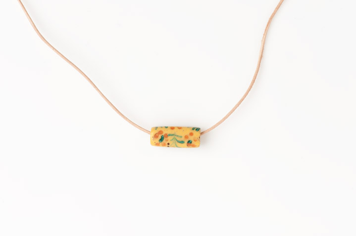 | インドラ | 3種類のベネチアンビーズは、 18~19世紀のものです。 そしてひとつだけローマンガラスがあって、 それは2000年ほど前のものです。 ローマからアフリカに輸出したビーズです。 |