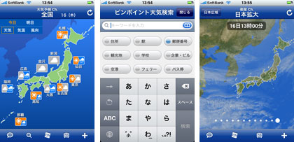 | 気象に関するサービスを提供している ウェザーニュース社のサービスが受けられるアプリ、 『ウェザーニュース タッチ』です。 まさに全国の天気はもちろん、 住所を指定したピンポイントの天気を調べたり 天気予報風の動画も見たりできる便利なアプリなんですよ。 |