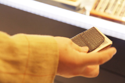 腕時計のベルトであったり、財布であったり名刺入れ。エレガントな男性の手にこそふさわしい、上等な革。丁寧なあつらえ。ここのベルトをあしらった時計がとても上等になる。財布の中のお札はなんだか居心地よさげで、名刺が立派な名刺にみえる。カミーユ・フォルネでボクの体をくるんでもらえば、ボクも立派にみえるかも‥‥、って妄想しちゃう。