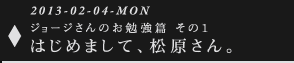 | ジョージ | はじめまして、松原さん。 魔女と噂されるかたにお目にかかれて、 たいへん光栄です。 |