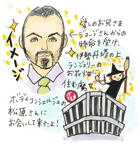 あらかじめ松原さんにお目にかかり ランジェリーの知識を仕入れておいたジョージさんが おおたうにさんを連れて伊勢丹新宿店を訪れました。 ゆっくり時間をかけて、試着をしていきますよー! |