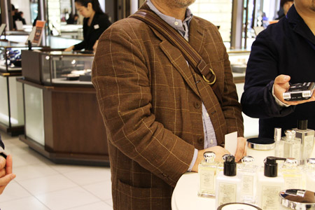 | 堀川さん | はい。そしてさらに手前の柱から左側が メゾンブランドというくくりになっております。 さらにルーム・ディフューザーやフレグランスなど、 各メゾンの集積コーナーと、 ファッションブランドのフレグランスを 集めたコーナーになっております。 |