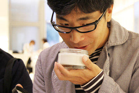 | 西本 | ああ、いい香りだ。 バリ島とかのいいホテルに 果物がポンと置いてるかんじのにおい、しますよ! |