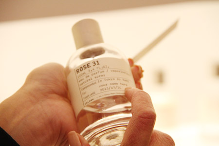 | 堀川さん | ルラボは、2006年に創業した ニューヨークのメゾンです。 調合したての香りを楽しんでいただけるんですよ。 店舗によってはエッセンスオイル、 水、アルコールを別々に保管して、 ご注文をいただいてから調合することもございます。 伊勢丹では常に新しいものを、 短いスパンで常にお入れしているんですが、 お決まりいただいてから 店頭ですぐラベルをお作りして、 ちょっとオーダーメイドのようなかんじで ここのユア・ネームっていうところに お好きなお名前ですとか言葉ですとかを 入れさせていただいてお渡ししています。 なかでもこちら ローズ31(サーティーワン)は 男性にお使いいただけるローズの香りで、 とても人気があるんです。 |
