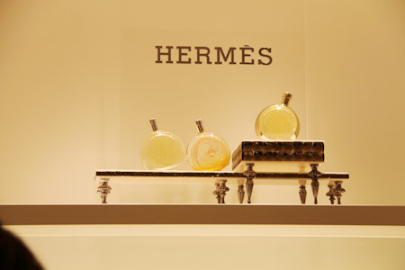 | 堀川さん | ユニセックスなタイプですと このあたりですね。 「ヴォヤージュ ドゥ エルメス」。 木の香りなんですけれども、 ジンのような香りが、最初にします。 ジュニパーベリーですね。 ジンに香りをつけるハーブの香り。 |