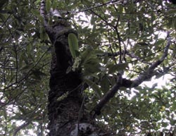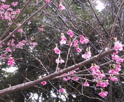 | その38 花をめでるということ 東京は週末ごとの雪というニュースをTVで見て 少々懐かしくなりました。 今日は寒いかなと思う日でも気温が10℃以上ある奄美では、 雪など望むべくもないのです。 雪がだめなら、花でもめでるとしましょうか。 ということで、サクラの花を見に行きました。 奄美大島のヒカンザクラは1月中旬に花を開き始め、 2月末頃まで咲いています。 寒い時期にスカーレット(緋色)の花をつけるので緋寒桜、 最近、別名でカンヒザクラ(寒緋桜)とも呼ばれます。 どっちでもよさそうなものだと思うでしょう? 実は、本土にはヒガンザクラという桜があります。 こちらは3月下旬から咲き始めるので彼岸桜。 混同を避けるために、 通り名としてカンヒザクラが普及しつつあるわけです。 さて、花見に行った1月最後の日曜日、 自然観察の森のサクラは4分から5分咲きという加減。 ただでさえ釣鐘型の花は元々全開にならない内気な性格で、 全体的に花よりもむしろ枝ぶりが目立つ趣きです。 この寂びた感じ、桜というより、どこかで…そうそう! 時期的にも花の色からも、紅梅を連想してしまうのです。 それでも多くの人が見学に来ていました。 公共交通機関のないこの場所まで、家族でドライブ。 なかには麓から数キロの山道を歩いてきた人もいます。 目的は花を見ながら家族や仲間で団欒のランチタイム。 屋台も酔客も携帯カラオケも一切なし。 これが花見の本来あるべき姿なのでしょう。 緋色あざやかなヒカンザクラ 別のある日、コゴメキノエランを見に行きました。 奄美大島の限られた地域にしか自生していない野生ラン。 このランは樹木に着生し、冬に花をつけます。 垂れ下がるように咲いた薄黄色の小さな小さな花。 可憐といえば聞こえはいいですが、 これは侘び寂びさえも超越し、地味と紙一重の美しさです。 みるからに虚弱体質そうで、 やはり絶滅危惧植物に指定されています。 奄美の深い森にしか生きられないのは一目瞭然なのですが、 それでも盗掘が絶えません。 違法行為によって採取された株は、 熱狂的な愛好家のラン舎で寵愛を受けるのでしょうか? それが花をめでるという行為なのでしょうか? ひっそりと咲くコゴメキノエラン |