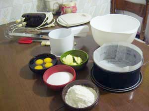 (2)ボールに卵とお砂糖を入れ混ぜ、