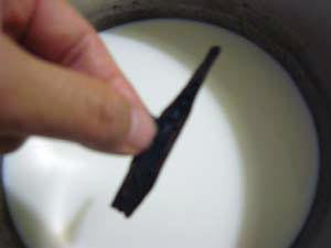 (10)沸騰直前のミルクを茶こしに通しながら、