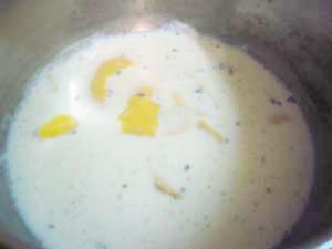 (8)檸檬の皮も入れて、沸騰前まであたためます。