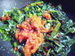出来上がったところに湯むきして刻んだトマトと、
