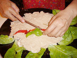 (4)肉の上にソースをのせ、冷蔵庫でよく冷やす。