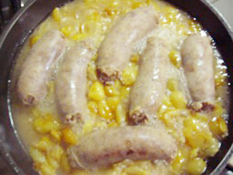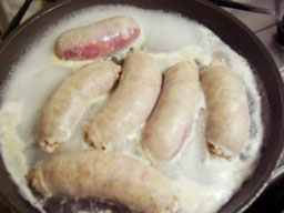 (1)サルシッチャは一度、湯がいてアクだしをする。