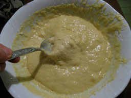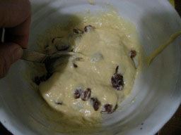 (5)(3)に干しレーズンを入れて、かき混ぜる。