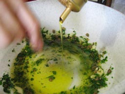 (2)ボールにパセリ、ケッパー、ニンニク、