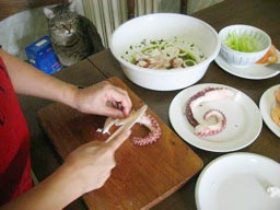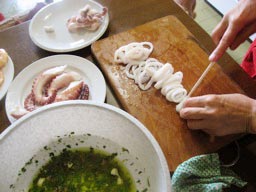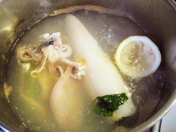 今度はそのお湯の中にいかを入れてさっとゆでる。