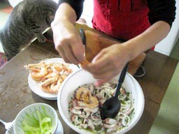 (10)いか、たこ、エビをボールに入れ終えたら、
