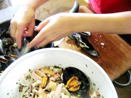 (11)ムール貝は飾り用に使うものには貝殻を付け、