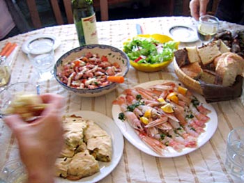 ![]() クロアチアへ行って来ました。 スロベニア共和国を通り、 クロアチアのスプリットという街まで 車で7時間の旅でした。 スプリットは ローマ皇帝ディオクレティアヌスが建てた宮殿や その周りの歴史的建造物が ユネスコの世界遺産に登録されている街です。 ヴェネツィアの領地だった時代があるせいか、 イタリア的な町並みで、 街のたたずまいに親しみがわきます。 その昔、海路から来た人たちは アドリア海に突如と現れる、 城壁で囲まれた宮殿を見て、 蜃気楼を見た気持ちになったのではなかったかしら? なんて想いをいだきました。 このスプリットには、宿を営んでいる 日本人女性がいます。 息子から彼女の話を聞いて、 どうしてもお会いしたくて、今回の旅となりました。 宿は、旧ユーゴ時代に建てられた 高層のビルの中にある「苫屋」。 11階の窓から一望できるアドリア海は淡いみずいろで イタリアの街から見る色とは違い、 磯の香りも薄く静かな海でした。 「苫屋」のオーナーである彼女は、 教員を務めていた頃に、海外青年協力隊に参加し、 クロアチアで暮らすことに。 そして、すっかりクロアチアの人々や風土が好きになり、 若い外国人旅行者のための宿を作ることにしたそうです。 国籍を問わず若者達の気持ちをつかむ 彼女のクロアチアに魅せられた熱い想いをうかがって、 私は説得力のある彼女の生き方に魅了されました。 また、やさしい笑顔のもてなしは、 自然体で重すぎず、ちょうどよいあたたかさで、 宿の家庭的な雰囲気に旅の喜びが増しました。 ![]() ▲エプロンをつけている方が苫屋のオーナーです。 左の方はアシスタントの方です。 クロアチアの人々は、想いをうちに秘めて、 表情にあまり出しません。 その押しつけがましくない感じや、 それゆえに伝わってくるやさしさは、 ラテン的な表現に慣れている私にとって、 とても新鮮です。 彼女もそんなクロアチア人のようなタイプで、 料理の味にたとえるとしたら、 さらっとしていながらもこくがあり、食べあきない感じです。 ところで、「苫屋」のキッチンをお借りして、 クロアチアの市場で買った材料を使い、料理を作りました。 街の風景とともに、ご紹介しますね。 ![]() ▲ディナール山脈の石灰岩壁がせまる海岸線。 ![]() ▲「苫屋」は背の高い建物のある地区にあります。 ![]() ▲城壁の外。カッフェが並ぶ場所です。 ![]() ▲魚市場です。かけ声の元気さはイタリアと同じ。 新鮮なものばかりなので 何を買ってよいか迷いました。 ![]() ▲アンチョビだけを売っているおばさん。 気軽に味見させてくれました。 ![]() ▲青果市場です。 売り上手のおばあちゃんに 次から次へと商品をすすめられました。 市場で買った材料で、「苫屋」のキッチンを使って こんな料理を作りました。 ・生スカンピのグリーンソース ・たこのサラダ ・貝の蒸し焼き ・グリーンサラダ ・小モンゴイカのパスタ さらに、オーナー手作りのブーレック (パイのようなもの)をいただき、 これら料理で、 おいしいクロアチアのワインが進みました。 ![]() ![]() 今回ご紹介する料理は、 「苫屋」で作ったパスタをイメージした いかのパスタです。 クロアチアから帰国した後、 近所の青空市で新鮮ないかを見つけたので作ってみました。 おいしいいかと出会ったときに、ぜひお試しください。