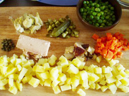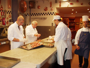 ![]() 20年前、ミラノで暮らし始めたとき、 街中にある高級惣菜店「ペック」に驚きました。 品揃えが豊富なことに加えて、 どのお総菜もとてもおいしい。 それまで暮らしていた 田舎のリエティにはこのような店はなかったので、 軽い衝撃があったことを覚えています。 いまでも、間違いなしのおいしい物が欲しいときは、 自然と足が向きます。 特に、日本食用の薄く切った おいしい肉が欲しいときは欠かせません。 買ってきた食材で料理をして出すと、 家族に悟られ、 「今日はペックだね、力が入っているねえ」 と言われます。 また、「料理のお勉強」という大義名分で 贅沢なお惣菜やハムやチーズを買うときもあります。 「ペック」は、私たちの一般の主婦にとって、 毎日お買い物ができる気軽なお店ではありません。 でも、ついつい足が向いてしまうのは、 「ペック」が居心地のよいお店で、 買物はしなくとも、店内をいろいろ眺めて、 2階の絵画がたくさん飾られているバールでお茶をして、 気持ちよく帰ってくる‥‥ なんて楽しみ方もできるからです。 さて、「ペック」についてご紹介しましょう。 日本にもお店があるそうですが、ご存知ですか? ミラノが伝統的な食文化だった19世紀に、 プラハから来たチェコ人のフランチェスコ・ペックさんが ドイツのハム、ソーセージ肉の薫製品のお店を 開いたことから始まったそうです。 王室やブルジョワ階級の御用達店にまでなり、 その後、何人か経営者がかわった後、 1970年からストッパーニ4兄弟の経営になりました。 「ペック」を営んでいるストッパーニ4兄弟のひとり、 レモさんからうかがった話によると、 彼らの父親は「働くこと」の哲学を 身をもって厳しく子ども達に授けたそうです。 気品と鮮度が満ちあふれている独特な空気は、 ストッパーニ兄弟が自らも職人として、 100人を越える従業員といっしょに、 現場で働いているから生まれてくるのだと思います。 毎週1回は兄弟とその子どもたちが集まり、 意見交換をするとのことです。 時代にそって変化している お客さんからの要望にこたえるため、 味付けやリクエストの採用については、 子ども達の若い世代の声を大事にしているそうです。 「よい物をお客さんに提供するために 研究を怠ってはいけない」 この精神が「ペック」を世界的にも有名な 食のリーダーにしている理由だと思いました。 レモさんからプレゼントされた「ペック」の本に 「4人兄弟が責任を持って各部門を統括し、 愛情、良心、そして情熱をもって支え合い、 お店を発展させている」 と評論家が書いていましたが、 その通りだと納得しました。 家族経営は難しいことも多いと思いますが、 信頼と愛情で結ばれ 同じ理想を夢見て頑張っている兄弟の いきいきと働く姿を見て私はうれしくなりました。 ![]() ▲ストッパーニ兄弟三男のレモさんが お店の奥にある厨房を案内してくださいました。 レモさんはチーズとインポート部門の責任者です。 中央が私。右端は友人です。 ![]() ▲写真の左奥が長男のアンジェロさん。 お惣菜と精肉部門の責任者です。 ![]() ▲長男のアンジェロさんの下で働く、 お惣菜部門のシェフたちです。 ![]() ▲お菓子部門ではパスクゥア(復活祭)用の 卵チョコレートを作っていました。 お菓子部門は次男のマリオさんが責任者です。 ちなみに四男のリーノさんは会計の責任者です。 ![]() ▲カーニバルを見ながらお買い物にきました。 私も「ザンパノさんの紙ぶくろ」を愛用してます。 ところで、 今回ご紹介する料理は、レモさんおすすめの 「ペック」のロシアンサラダです。 私たちにもできるレシピです。