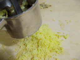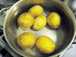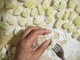 ![]() 日本からミラノにいらした方の多くは、 まず、道に堂々と駐車している車の多さに驚かれます。 ほこりだらけの車が、道にびっしりぎっしりです。 最近ようやく駐車規制ができて、 道にひかれた黄色いラインのスペースは地区住民対象、 青いラインは時間制有料スペース、 その他にも、荷物運搬用スペースや 身体障害者用スペースなどができましたが、 あいかわらず駐車スペースには 1台分の空きもありません。 車が規定のラインの中に入っていれば 前後の車間はまったく問題にしません。 どの車も信じられない車間で駐車されています。 では、どうやってぎりぎりのスペースに駐車するのか? なんと、前後の車をボンネットの先で押しながら 移動させて、少しずつスペースを確保するのです。 前後の車にぶつかっても、 ぶつかるのはバンパーですから、傷がつかないのです。 見事なテクニックです。 「バンパーはそのためにあるんだから 気にするな」 というのが、みんなの言い分です。 駐車事情と同様に、運転事情も日本とずいぶん違います。 田舎のリエティから、 車でミラノに初めて来たときの驚きを 今でも覚えています。 ミラノに到着したのは夜中でした。 街中に水銀灯があり、 どの道も明るくて、「都会」を感じました。 そして、その「都会」の運転ときたら! 4車線から2車線に入る手前で 走っている車がいっせいに競争を始めました。 素晴しい駆け引きとハンドルさばきが 繰り広げられていました。 走っているときだけでなく、 赤信号で止まっているときも油断ができませんでした。 青信号になったら‥‥ いや、青信号になる少し前からエンジンをふかして、 出発の気配を後ろの車にアピールしないと、 早く出発せい! とばかりに、 クラクションが鳴り響くのです。 (青信号にはまだなっていないのに!) 「せっかちな運転」 これがミラネーゼのドライバーの第一印象でした。 ミラノでは歩いているときも油断大敵です。 歩行者がいないときは 信号を無視して平気で走っている車も多いので、 青信号のときも、左右をよく確認してから 横断歩道を渡るようにしています。 みなさんもイタリアにいらしたときは 車に注意してくださいね。 さて、今回ご紹介するメニューは、 ジャガイモのニョッキです。