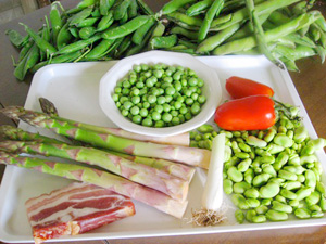 ![]() 4月21日付けの「今日のダーリン」や 「postma@1101.comから。」の 電車内での過ごし方を読んで、 私のイタリアでの経験談を書きたくなりました。 日本に帰国したときに電車に乗ると 寝ている人が多いことにいつも驚きます。 車内に「寝ても安全」の空気が漂っているので 私も無防備のまま、すぐさま夢の中に突入できます。 でも、こちらでは注意を要します。 イタリアに来てすぐ、 電車でペルージャから北の街バレンツァに 何回か通っていた頃の話です。 南のナポリからやって来る電車に乗りかえて ミラノまで約5時間。 電車はコンパートメント(個室)になっていました。 友達からは、大切な物は絶対に手から離さないこと。 見知らぬ人からキャンディーなどの 食べ物をすすめられても、 睡眠薬などが混含されている疑いもあるので 絶対に食べてはいけないことなど、 実体験と合わせて毎回聞かされ、 車内の注意事項を叩き込まれました。 ある時、コンパートメントに入り、 ひとつだけ空いていた席に私が座ったときのことです。 はじめのうちは周りの人たちから、 異様な視線を感じましたが、 凄まじいほどの声の大きさで話す明るい彼らに、 そのうちすっかりうち解けて、旅の仲間になりました。 当時、駅のホームで駅弁を売っていて、 いつものように買おうとしたら、 「そんなのはおいしくないから、一緒に食べよう」 と、お弁当を買うのを止められました。 彼らのお昼ごはんは家から用意してきた物で、 ワインや水などの飲み物もあり、 まるでピクニックのような、 おいしそうな物が次から次へと出てきます。 友達からの警告もすっかり忘れ、 そのときは家族の一員になったような気分になり、 家庭的なおいしい物を一緒に食べることで、 幸せの笑いがあふれました。 イタリアの南の人達は、そこの気候のごとく おおらかな太陽のように明るく、熱く、時には激しい‥‥ そんな気性を持った人が多いように感じます。 オープンで、初めて会う人でも、 仲間とみなしたときはすぐに歓迎してくれます。 ですから、その場に居合わせただけの見知らぬ私を、 旅を共有する友達として迎えてくれたのでしょう。 後に、イタリアの北にあるミラノに引っ越した際は、 車内のみんなの話し声が小さいことに気がつき、 南の人達との違いを感じました。 寒い地方だから口を大きく開けたくないのかしら? 商談などをすることが多いので 大きい声では話しにくいのかしら? ‥‥なんて想像を張りめぐらせましたが、 大きい声で話すことはエレガントではない、 とミラノの人たちが思っていることが 理由かもしれません。 ミラノの電車の中では、 「他人は他人」的なところを感じます。 よくとれば、個人を尊重し、 認めてくれているということです。 そのため、コンパートメントに乗ったときは、 ひとりの静かな時間を持つことができます。 とはいえ、先日、ミラノからヴェネチアに行ったときは、 同席した女学生と、スイスに移住した母娘と同席になり、 ダイエットの話題で3時間も盛り上がりました。 北や南の人達の気質うんぬんがあっても、 その時の同席するメンバーによって 旅の過ごし方はかわるものですね。 ひとりの時間を過ごすのもよし、 わいわいするのもよし、 どちらにしても電車での旅は楽しめるものです。 さて、今回、ご紹介する料理は春野菜のパスタです。 青い味の野菜たちをたんのうしましょう。