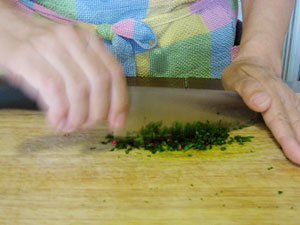 (2)パセリをみじん切りする途中で、