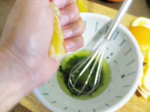 そこへドレッシングを混ぜる。