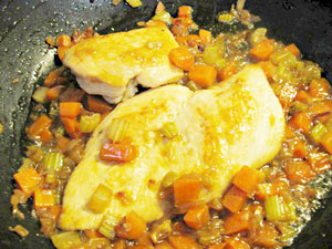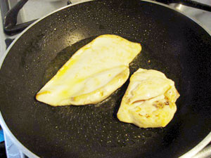 鶏肉を入れ、強火で両面を焼く。