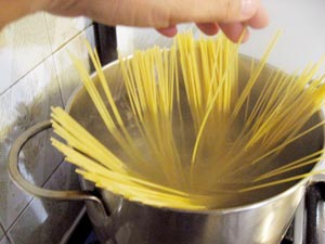 ・スパゲッティをゆでるお湯をわかしはじめる。