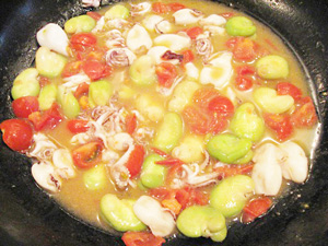 (6)ヒイカに火が通ったらソースの出来上がり。