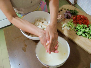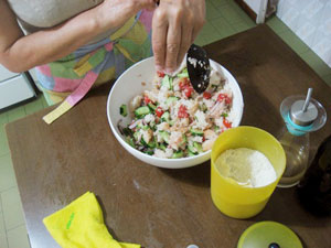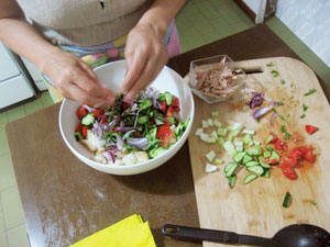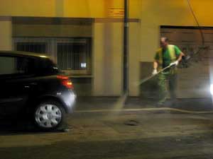 ![]() 夏の盛りは過ぎたとはいえ、 ミラノではまだまだ身も心もバカンス気分です。 しかし、あまりにもバカンス頭になっているため、 「日常的な約束ごと」をすっかりと 忘れてしまう危険な時期でもあります。 私の住居は一方通行の細い道にあります。 我が家ではこの道を駐車場に使っているのですが、 毎週金曜日の0:00〜6:00まで駐車禁止となります。 駐車禁止の理由は、その時間にやってくる 道路清掃車の邪魔をしないため。 駐車中の車は、その時間が来るまでに 一段高くなっている歩道や、 近くの掃除をしない道に移動させます。 歩道にのせた場合はお昼の12時までにおろさないと 今度は歩行者の妨げになるので違反になります。 我が家では金曜日の車の移動は もうすっかり習慣になっていて、 週に一度、生活に緊張感を もたらしてくれていました。 でも、残念なことに、 何回も駐車違反をおかしています。 バカンスで曜日感覚がずれているときに うっかりやってしまうことが多いです。 でも、ついに掃除法が変わり、 車の移動をしなくてよいようになりました。 「車の移動なし掃除日 日曜日0:00〜 」 このセンセーショナルなお知らせに 近所の駐車メンバーは沸きあがりました。 車の移動なしでどんな掃除をするのだろうか? 真夜中でしたが、思いきって見に行ってみました。 ![]() 清掃車が道に入って来ました。 緑色の大きな車がそれです。 車の脇に係の人がいます。 ![]() 係の人が洗車場で使う高圧スプレーの 洗浄ガンみたいな物で 歩道から車の下の方まで洗っています。 洗浄ガンから噴射される水しぶきはすごい勢いです。 ![]() ゴミは道の中央に向けて出します。 清掃車がそのゴミを大きなブラシでさらっていきます。 ![]() 片側が終わると反対側も掃除します。 やっかいな車の移動をなくしてくれたのは 人が手足を使って掃除してくれるようになった おかげだったのですね。 思わずうれしくなりました。 とはいえ、夏の今ならともかく、 冬の寒い時期にはつらそうな作業です。 やはり車は移動した方がよさそうですね。 さて、今回のお料理は かたくなってしまったパンを使います。 今回はツナを入れて豪華にしてありますが、 もともとは残りものでつくる トスカーナ地方の田舎料理です。 パンが入っているので腹持ちもよいですね。 冷蔵庫のお野菜をなんでも入れて楽しんでくださいね。