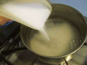 水に砂糖を加えて煮溶かす。