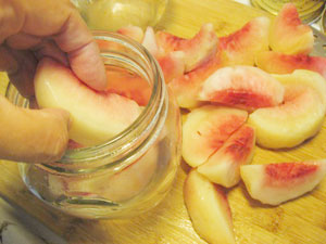 (4)ビンに桃を入れる。