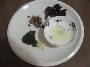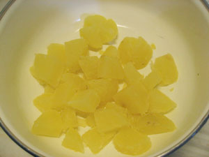 丸ごとつぶしたものを用意し、食べる前に取り出す。