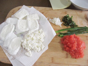 (3)(2)に薄切りのモッツアレッラをのせ、