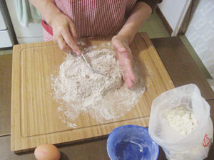 ・卵を入れて、粉と混ぜ合わせて行く。