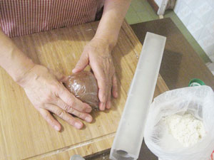 カカオ粉を入れて練った生地を