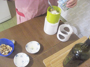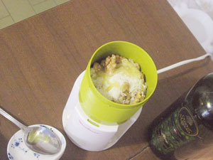 フードプロセッサーにクルミの半量と、