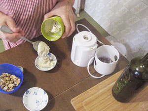 (6)クルミペーストを入れる。