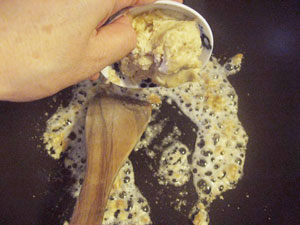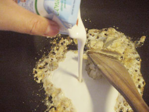 生クリームを大さじ2杯入れ、また少しまわす。