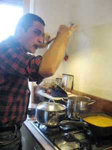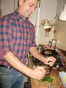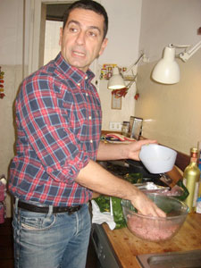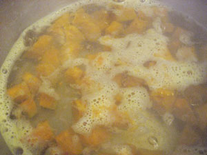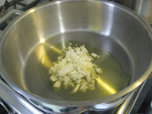 (2)鍋か深いフライパンにオリーブオイルを入れ、