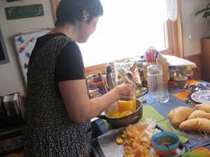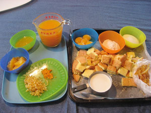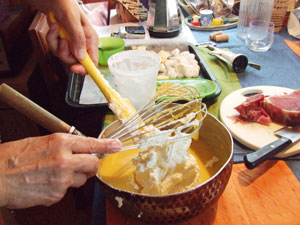 (1)ボールに卵黄と砂糖を入れてかき混ぜ、