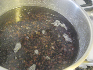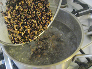 (1)塩を入れた湯で15〜20分、雑穀米をゆでる。
