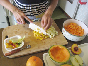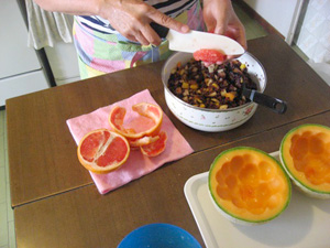 (4)メロンで容器をつくる。