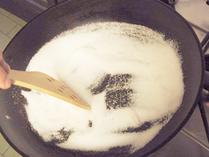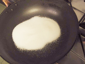 (1)深めのフライパンに砂糖を入れて、