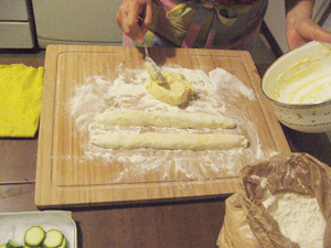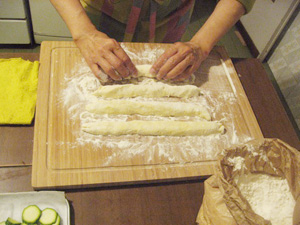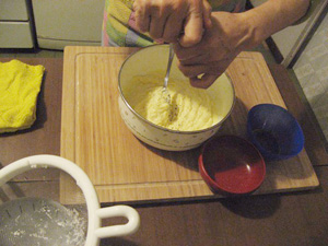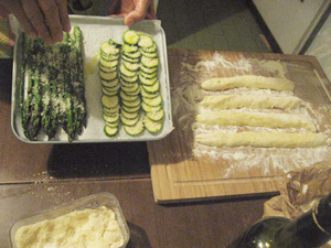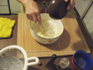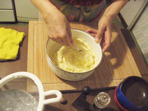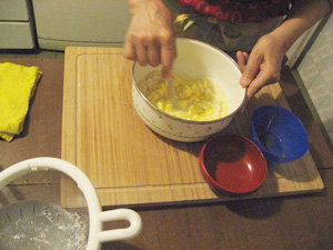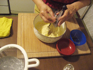 ・リコッタチーズは目の荒いざるで水気を切っておく。