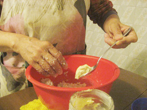 (10)マヨネーズとコショウを入れてかき混ぜ、