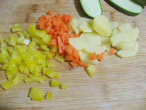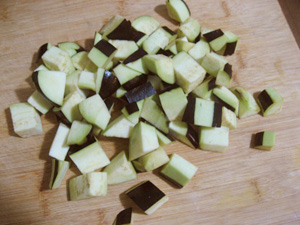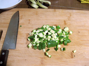 ズッキーニをサイコロ状に切る。