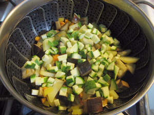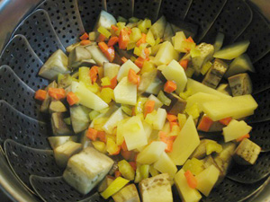 (5)(4)の野菜を入れて10分蒸す。