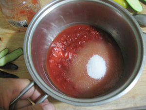 トマトソースに砂糖を入れて弱火で5分煮る。